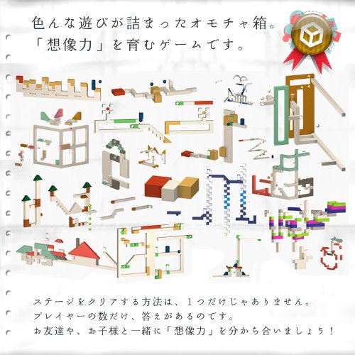 - しなやかなバランス感覚とやわらかい頭脳が求められる3Dパズルゲーム。PlayStation Moveのモーションコントローラを使って、60種類以上のステージを攻略していく。十二面体に卵型、大理石や磁石、プラスチックなど、重さや大きさが異なるさまざまな形状のブロックを積み上げたり、ブロックに爆弾をしかけて遠くに飛ばしたりと、手のひら感覚で楽しむことができる。3D立体視に対応し、専用メガネとテレビがあれば、ステージに奥行きが再現されてブロックとの距離感がつかみやすくなる。